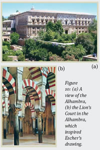 Figure 10: (a) A view of the Alhambra, (b) the Lion’s Court in the Alhambra, which inspired Escher’s drawing.