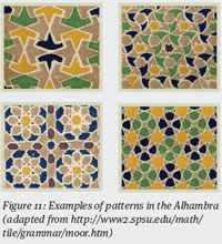 Figure 11: Examples of patterns in the Alhambra (adapted from http://www2.spsu.edu/math/tile/grammar/moor.htm)